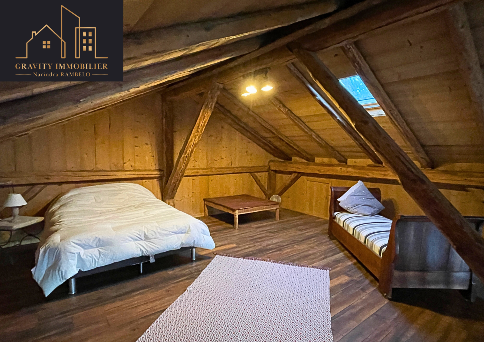 - Mezzanine accessible par escalier : lit double et 1 lit pour enfant