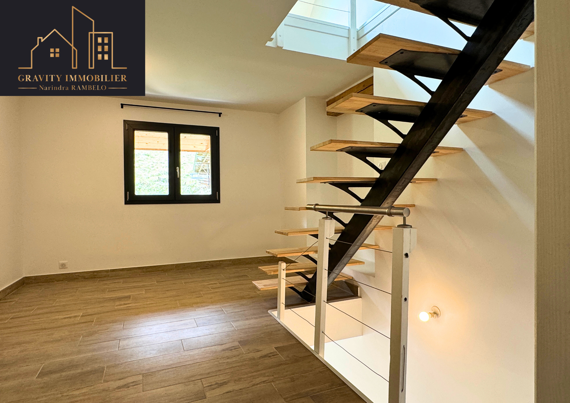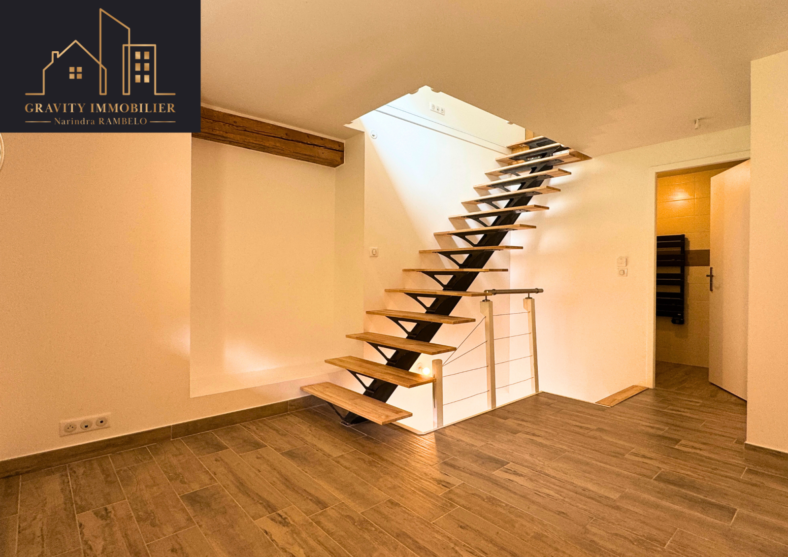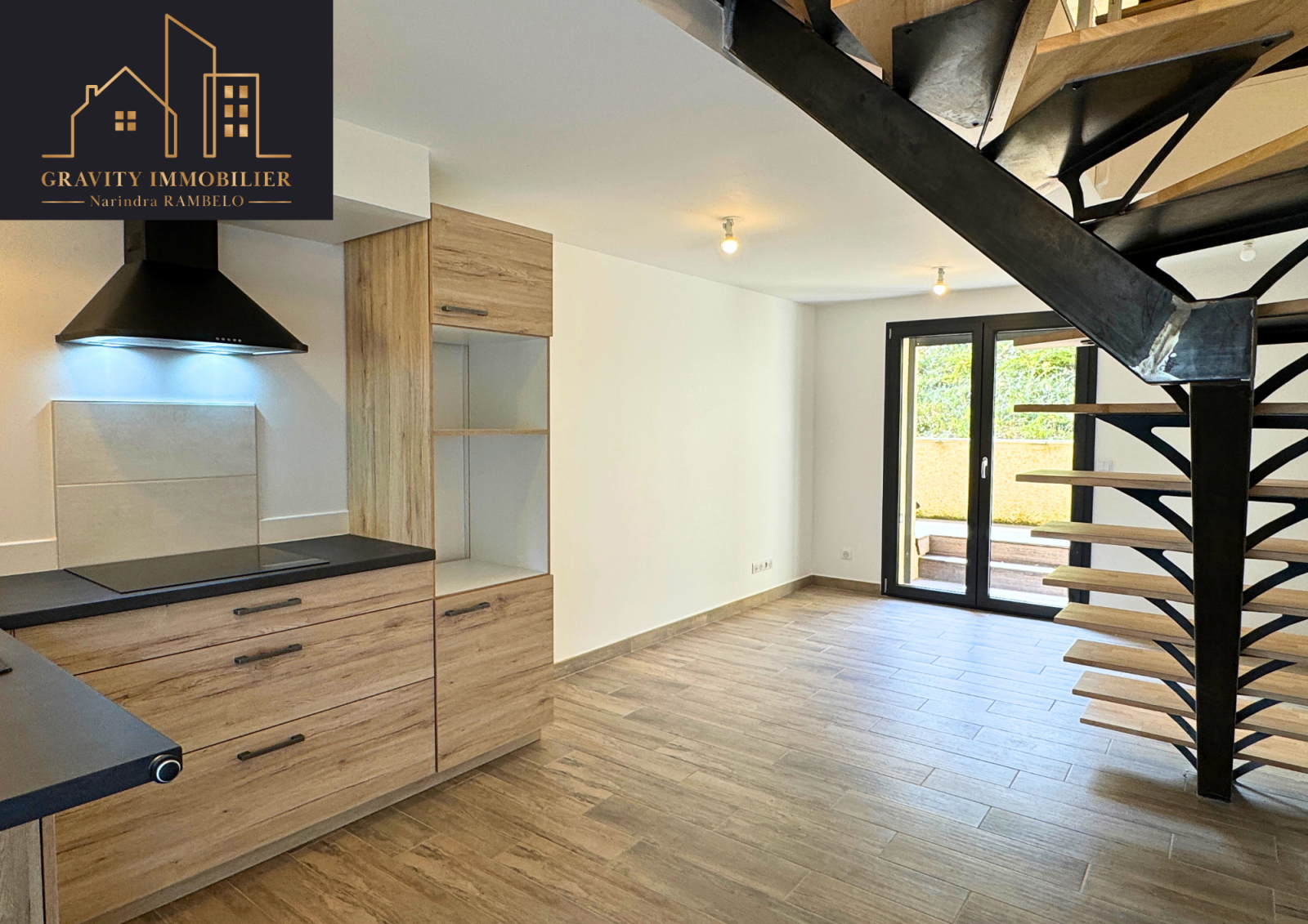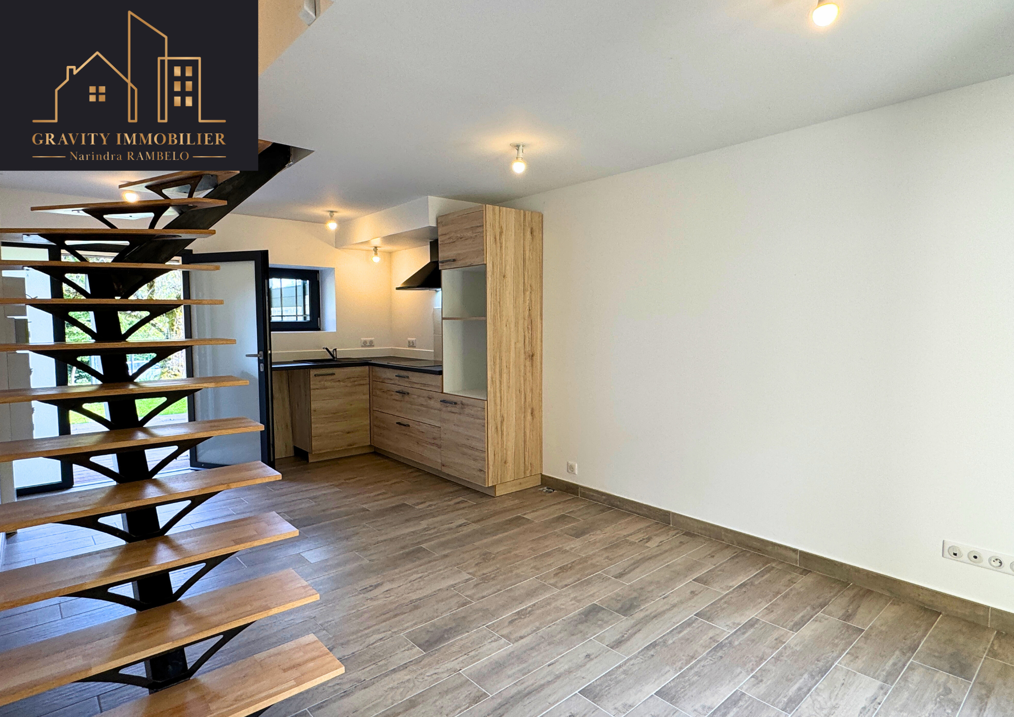 L’appartement se compose d’une entrée ouvrant sur un espace de vie lumineux avec accès direct aux extérieurs et d'une cuisine (existante sans éléctroménager), d’un pièce à vivre au 1er étage + salle d'eau et WC indépendants et au 2ème étage une chambre originale avec des espaces optimisés grâce à la configuration en triplex.