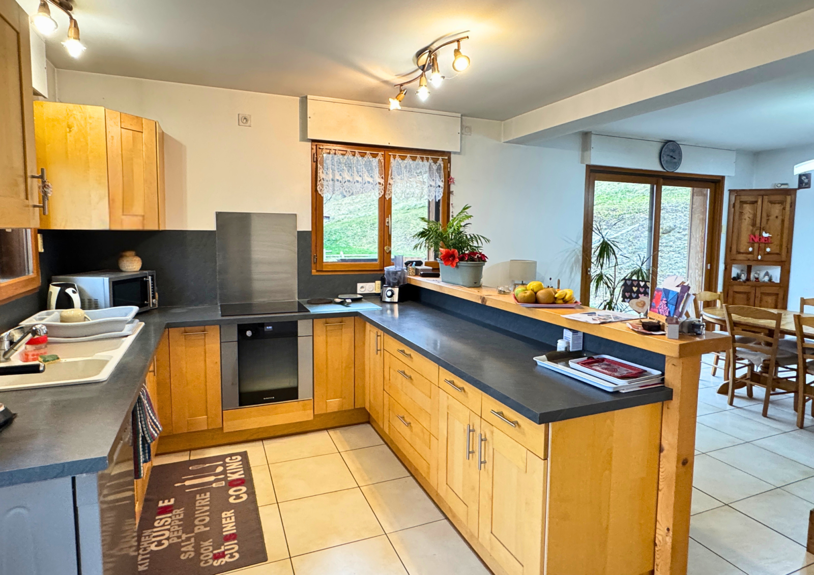 Cette maison allie confort et modernité dans un cadre magnifique et paisible face aux montagnes.