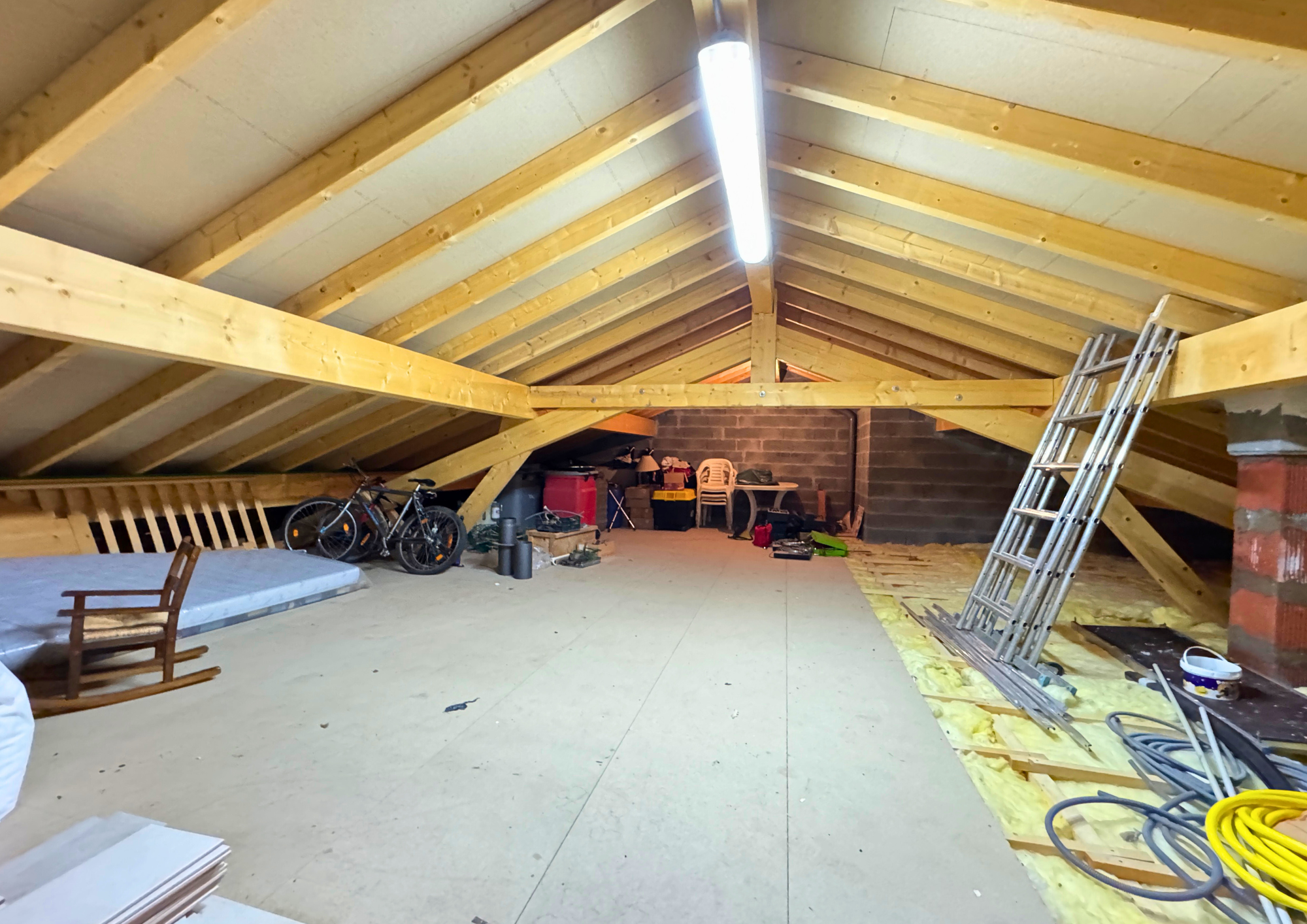 Depuis l’extérieur, un accès indépendant mène aux combles, qui peuvent être aménagés en studio, en T2 ou permettre d’agrandir la maison selon vos projets.
