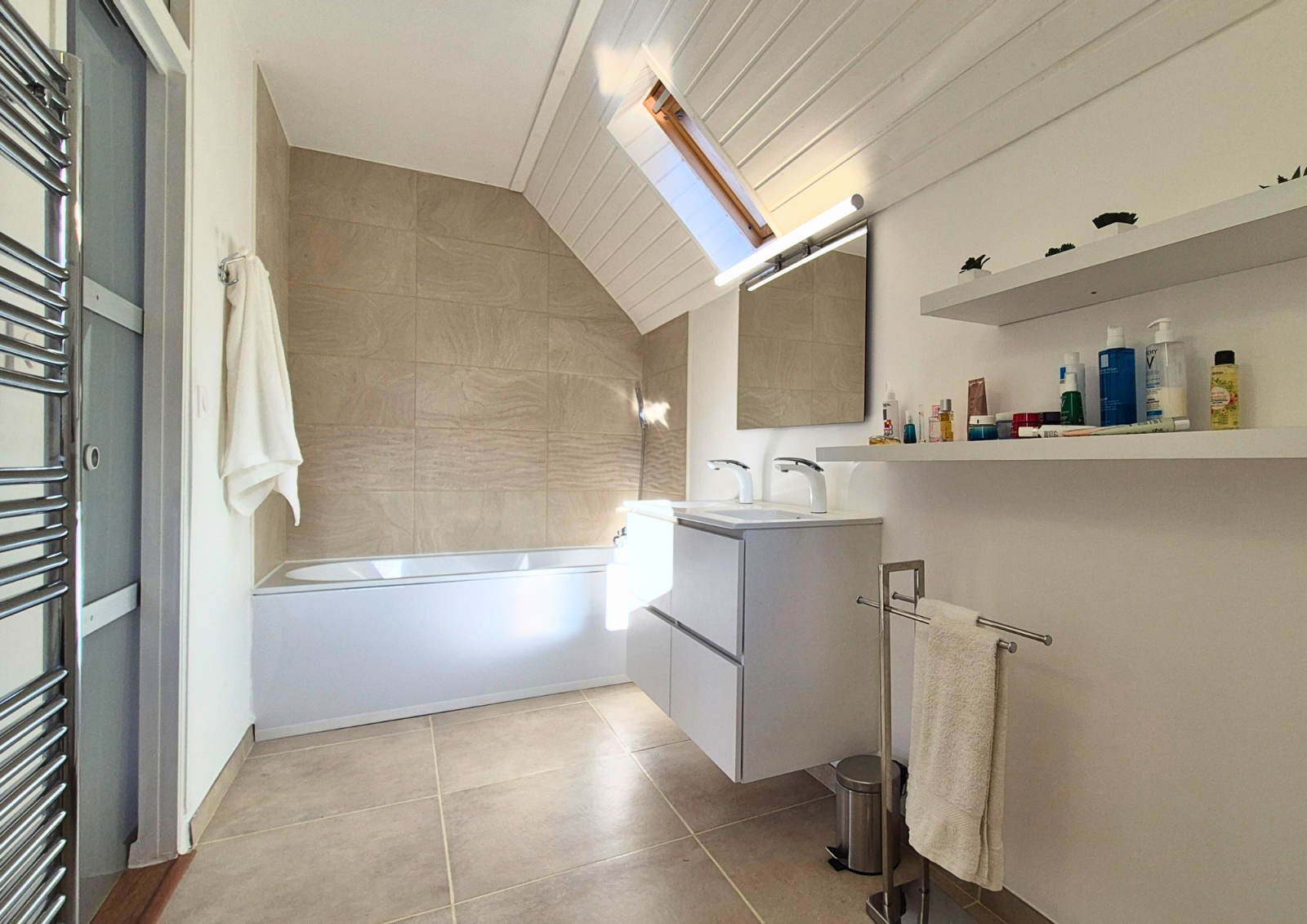 L’intérieur propose une distribution fonctionnelle et chaleureuse :